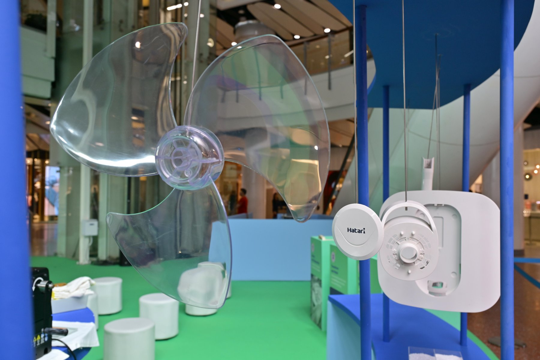 3. โซนให้ความรู้ Recycle Journey: ถ่ายทอดขั้นตอนการรีไซเคิลพลาสติกจากพัดลมเก่า ตั้งแต่การคัดแยกชิ้นส่วน ไปจนถึงกระบวนการแปรรูปเป็นวัสดุใหม่ ภายในพื้นที่มีการจัดแสดงโครงสร้างและส่วนประกอบของพัดลมให้ผู้เข้าชมได้เห็นอย่างใกล้ชิด พร้อมเปิดโอกาสให้ทดลองบดเม็ดพลาสติกด้วยตนเอง เพื่อทำความเข้าใจกระบวนการนำวัสดุกลับมาใช้ประโยชน์อีกครั้ง